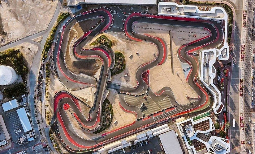 Full-scale outdoor racing facilities with hospitality, sponsorship zones, and tournament-ready tracks.